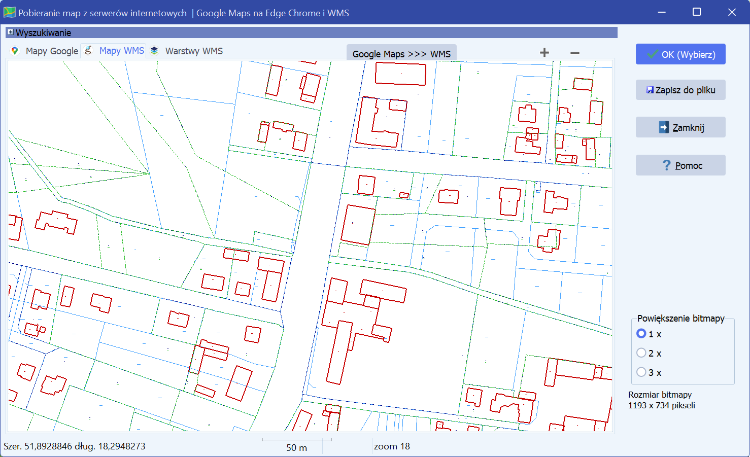 | 25 sierpnia 2021 r. | Ponieważ od sierpnia 2021 r. Google Maps wycofują się z obsługi przez wbudowanego w Windows Internet Explorera, został opracowany nowy moduł do pobierania map z Internetu, wykorzystujący przeglądarkę Edge Chrome. Widok okna. | |