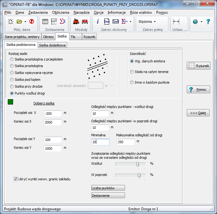Przykład wprowadzania siatki punktów leżących wzdłuż drogi