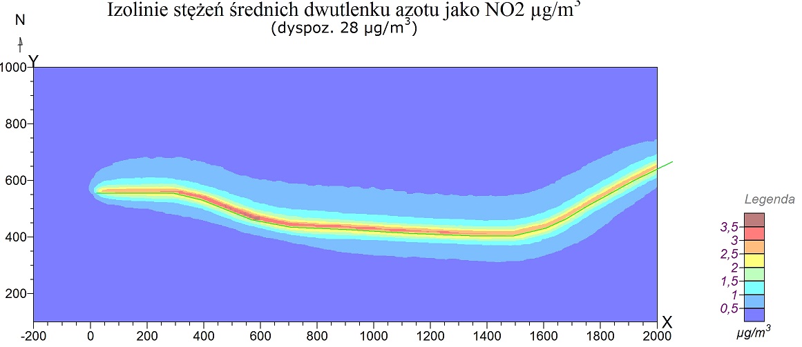 Taka siatka zmniejsza kilkukrotnie liczbę obliczanych punktów potrzebnych do uzyskaniu podobnych wykresów jak w siatce prostokątnej, ponadto dzięki dużemu zagęszczeniu punktów blisko drogi eliminuje się efekt serii maksimów. Do wykreślenia izolinii jest stosowana interpolacja metodą krigingu.