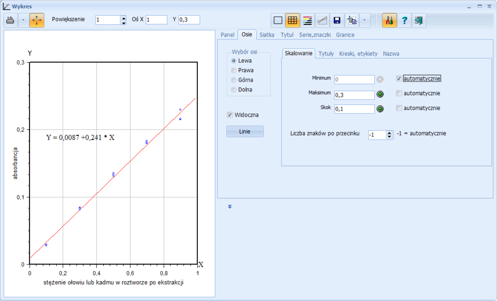 | październik 2012 r. | Wykres krzywej kalibracji zawiera wbudowany edytor opcji wykresu.Widok okna |